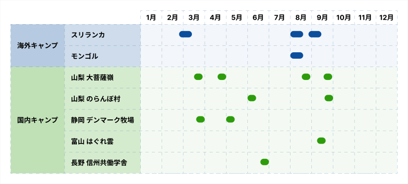 国内外の課題がある地域を訪れ、ホームステイや共同⽣活をしながら、その場所が必要としているワーク(農業・酪農・井⼾掘りや道路建設)を⾏います。