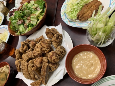 みんな、フライも野菜もたらふく食べて、お腹いっぱい!