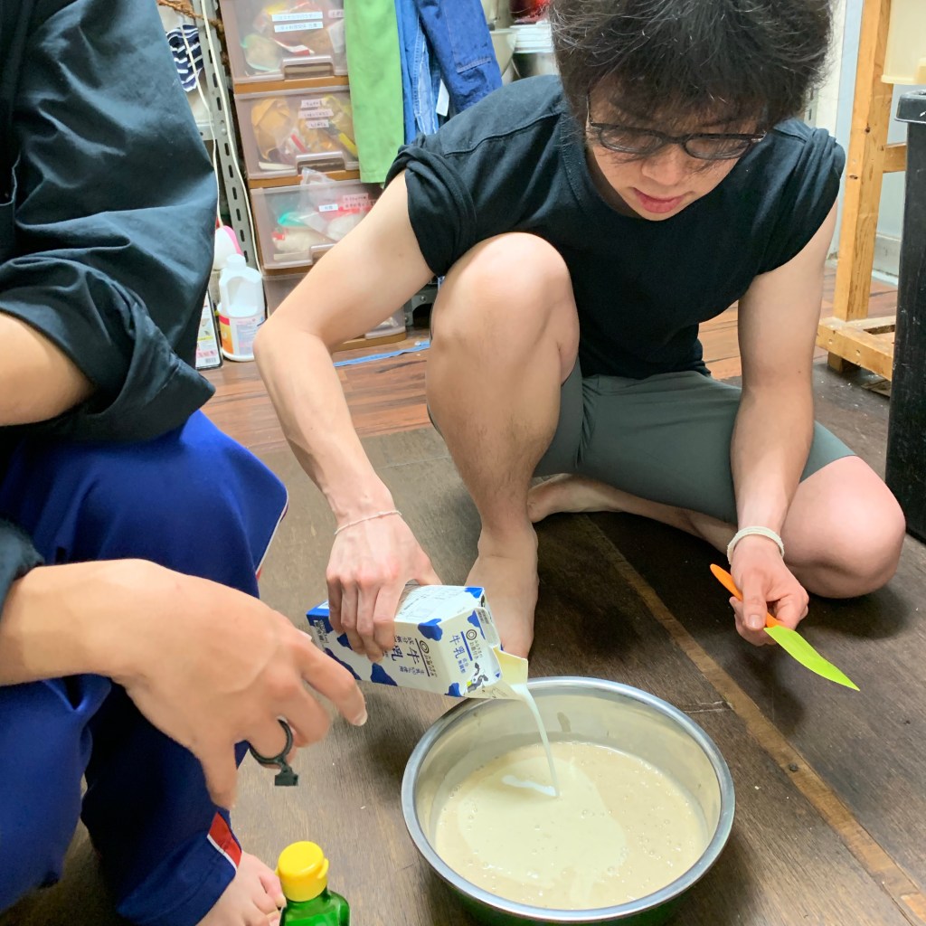 少量の牛乳をいれてのばしたら、タッパーなどにいれて冷凍庫で固めます