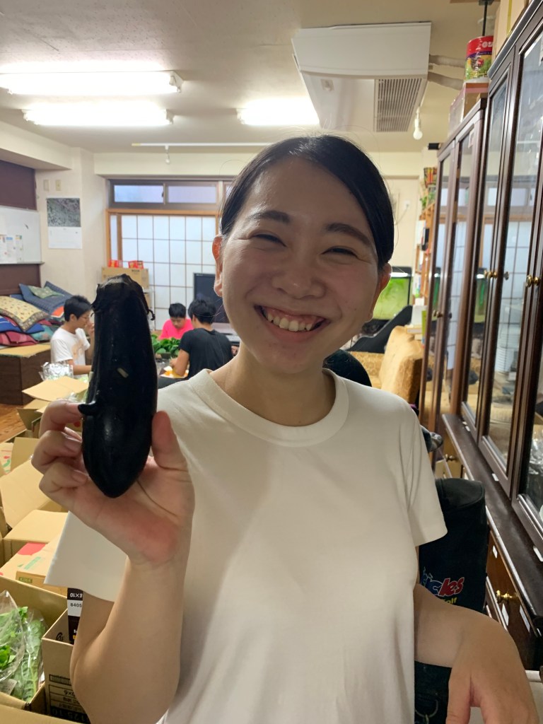 のぞみから聞いた話だと、広島キャンプのワークでもさまざまな形のナスを収穫したそうです。