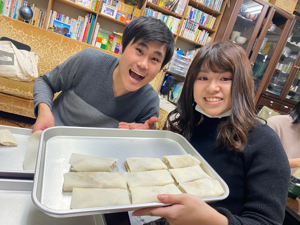 そして、みんなで今日の夜ご飯の春巻きを包みました!