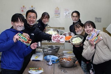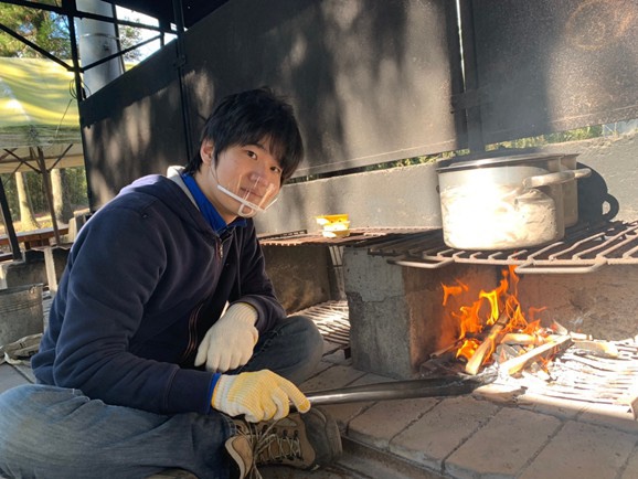 2日目も快晴!この日は、大空の下で野外炊事に挑戦!と、その前に、また外で体を動かします!「鬼ごっこ」や「ダルマさんが転んだ」など、みんなで楽しく遊びました!こんなに全力で走ったのは、大学生になって初めてだと思います(笑)