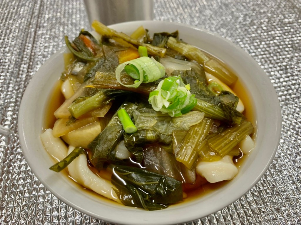 太めの仕上がりだったので20分ほど茹で、スタッフ特製出汁をかけたら、完成!!