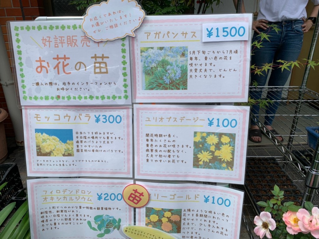 こちらの植物たちはグッドさんで丁寧に育てられています!マリーゴールドやモッコウバラなど、他にもたくさんの種類の植物が並んでいます!