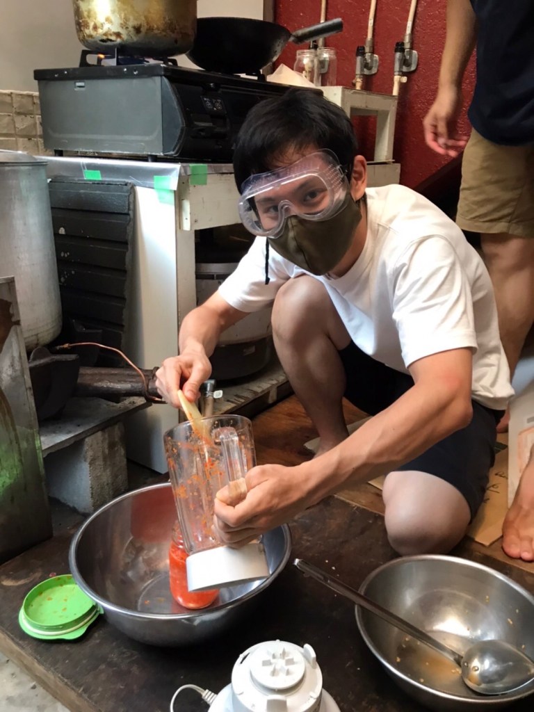 切ったハバネロを塩もみして、お酢を加えながらミキサーにかければ完成!
