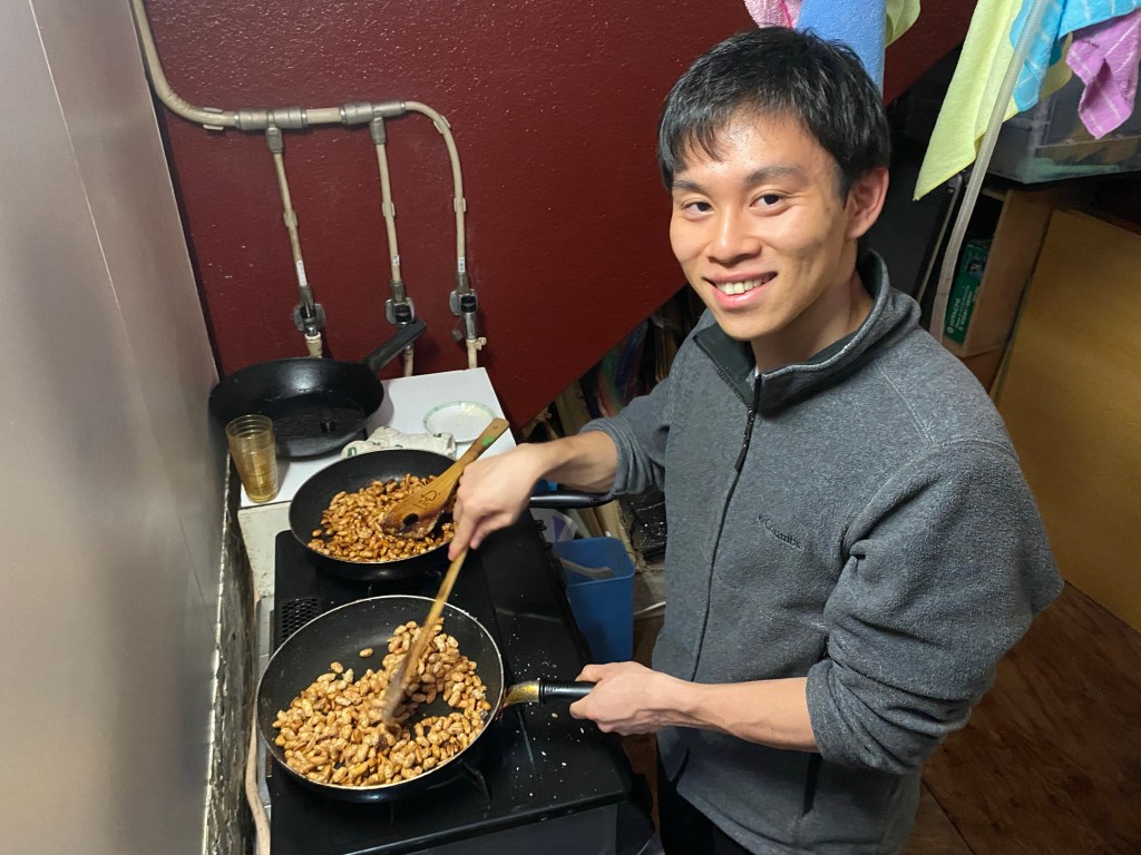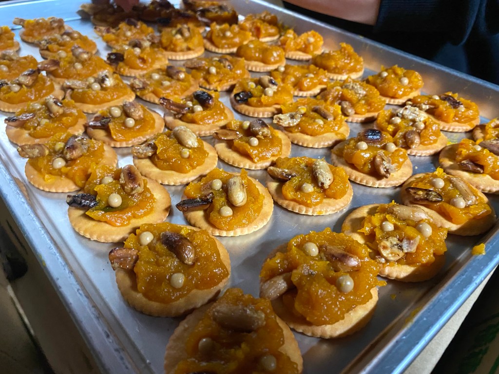 クラッカーの上に、カボチャあんとナッツを乗せたら、