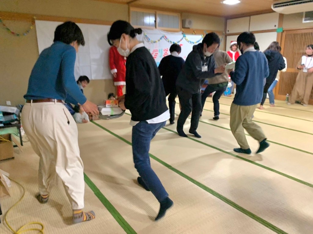 チーム対抗で点数を競い合い、プレゼント運びなどのゲームをやりました!
