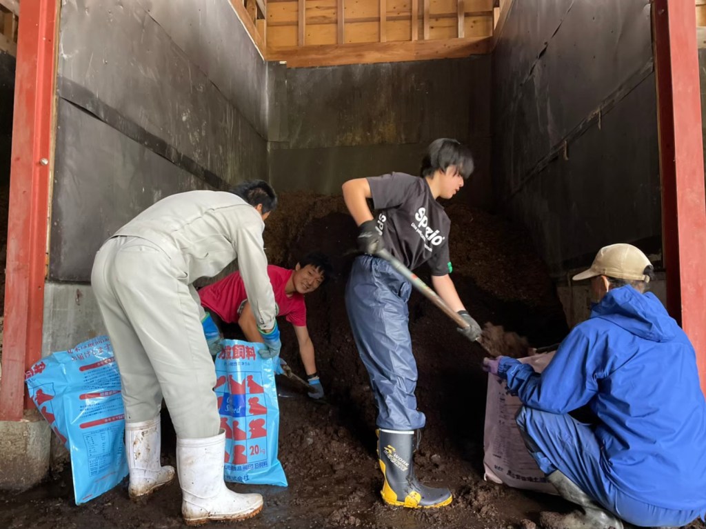 今回は、その堆肥の袋詰めと詰めた堆肥運んでを撒く作業を行いました!