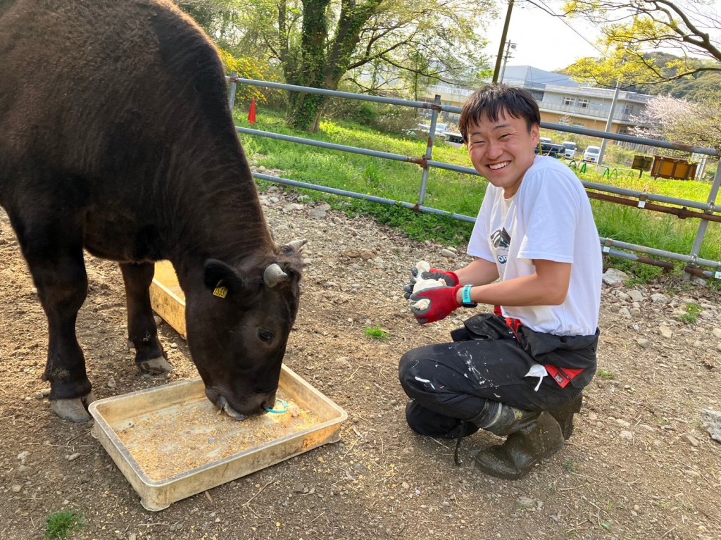 配合と呼ばれる飼料や、酒粕、干し草などをあげたり…