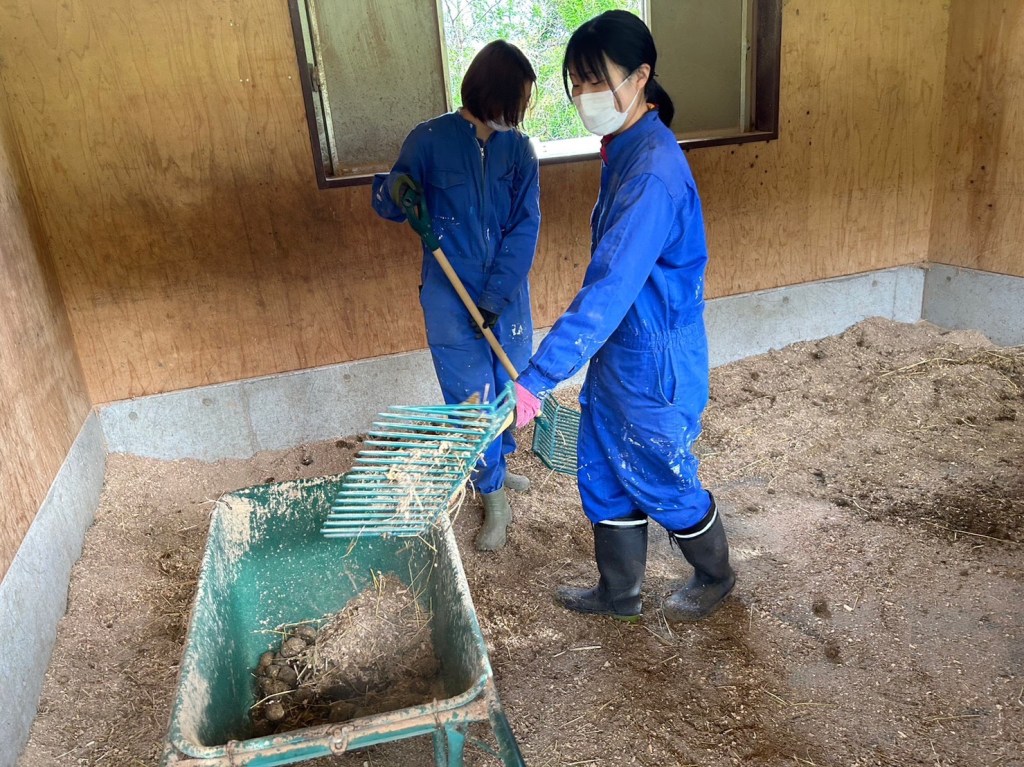 デン牧にいるウシやウマ、ヤギ、ヒツジに餌をあげたり、ふん掃除をしました🧹