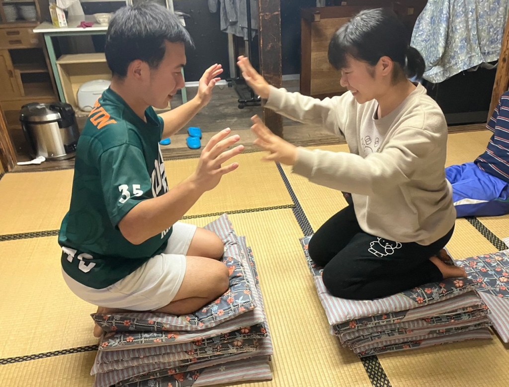 休憩時間は、みんなでゲームしたり、マッサージしたり、のんびり過ごしました。家の中は、涼しくて快適でした☺️