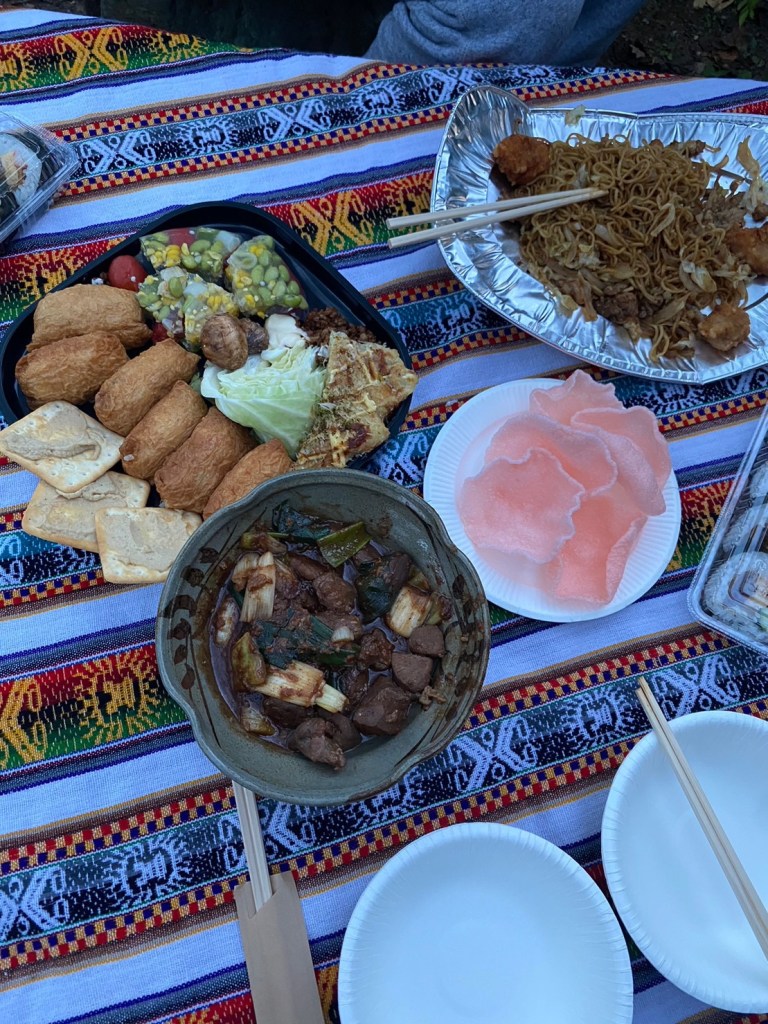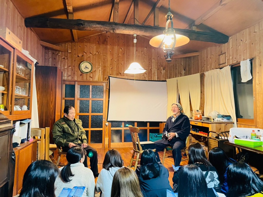 村の方たちとの交流会も開いていただきました。食べ物や飲み物を1人一品持ち寄り、ご飯を囲みながら、おしゃべりしました。のらんぼ村で暮らそうと思ったきっかけや、住んでみて面白いと思うことなど、いろいろなお話を聞かせてもらいました!