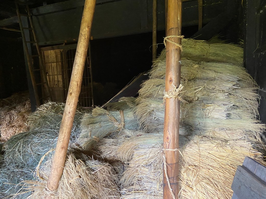 ご飯の後はちょこっとワーク! 運んだ茅(かや)を倉庫にしまうお手伝いをしました!!