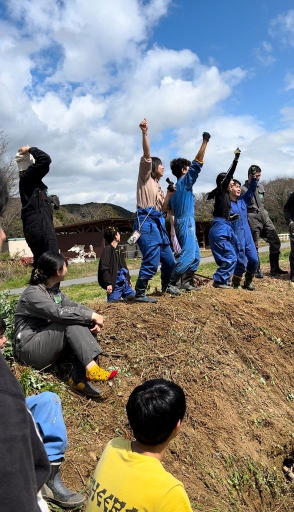 初めは堆肥に戸惑ったメンバーも、声を掛け合い、大盛り上がり!