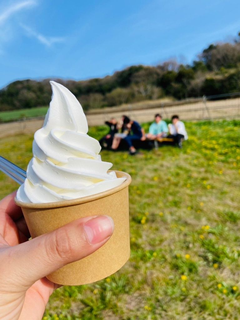 牧場で採れた牛乳を使ったソフトクリームを食べて、ご満悦✨