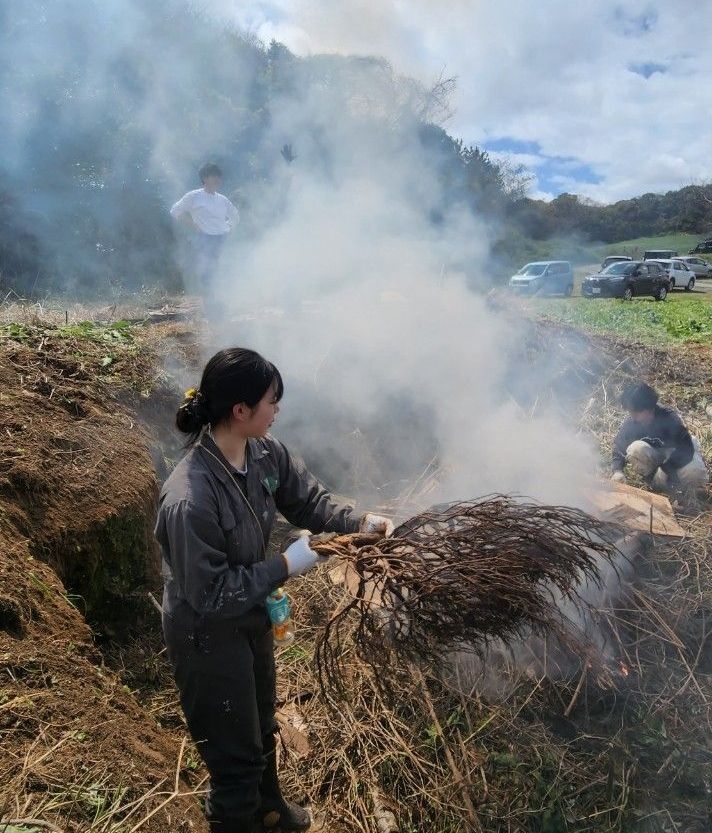 廃材を一箇所に持ってきて穴に投げ込み燃やします。皆で声を掛け合いながら運びました!