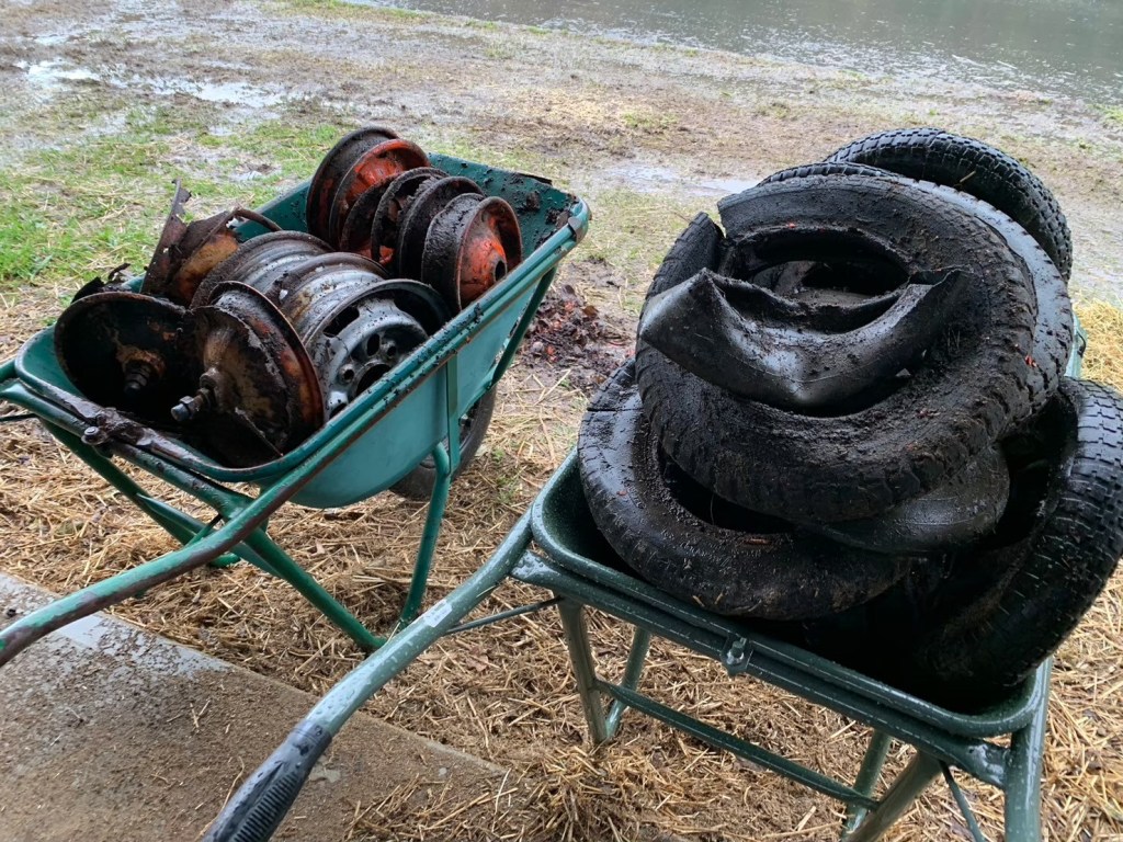 廃棄になった車のタイヤの処分まで手が回ってないとのことで、解体作業のお手伝いをしました。なかなか力と器用さがいるワークでしたが、みんなで根気強く頑張りました!