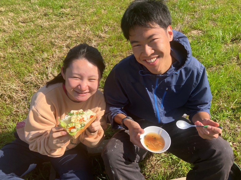 お日様に照らされながら食べるご飯はさらに美味しい!