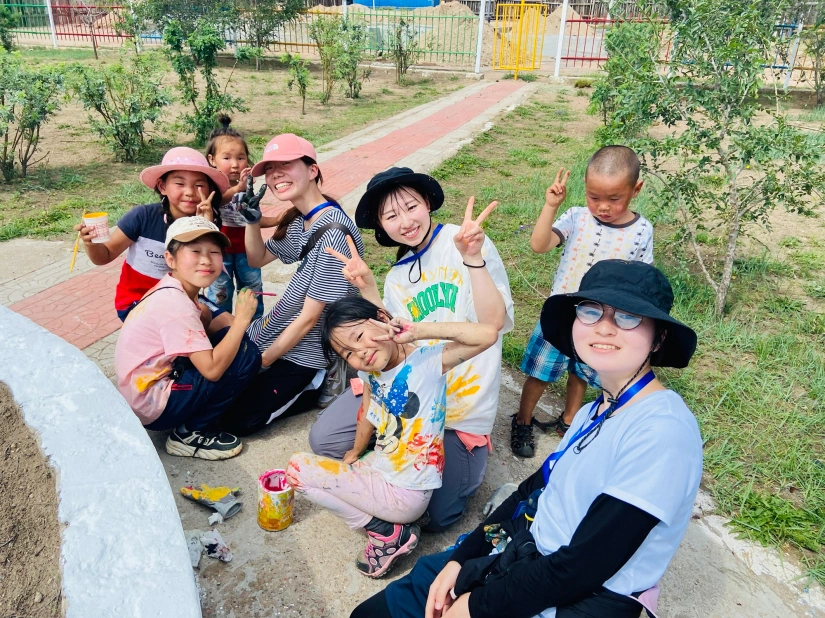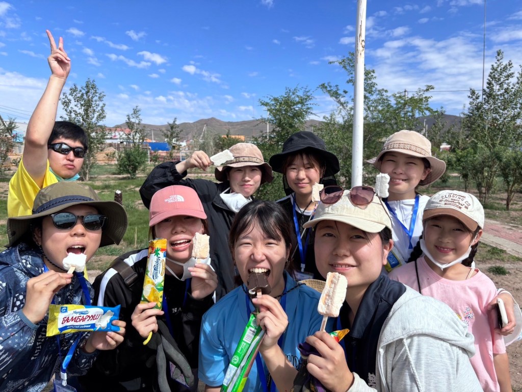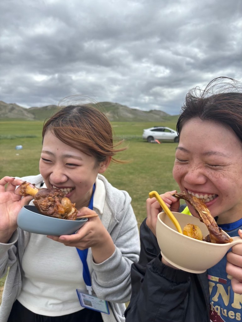 ワーク中は、モンゴル人が「お水をのんでください」と日本語を覚えてくれて、一緒に休憩したり、日本人も「ヒチェゲレー!(がんばれー)」とモンゴル語で応援したりしていました☺️