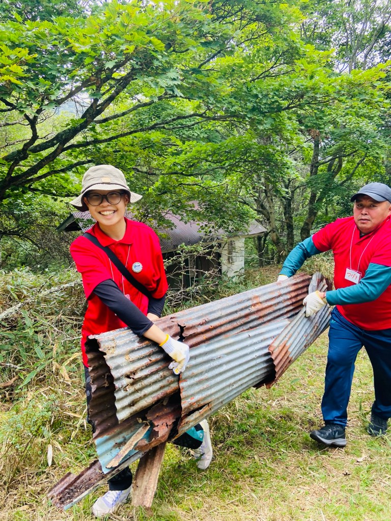 前半は、山梨県に行き、山小屋の修繕活動を行いました。山に入って、伐採や、瓦礫運びのお手伝い。
