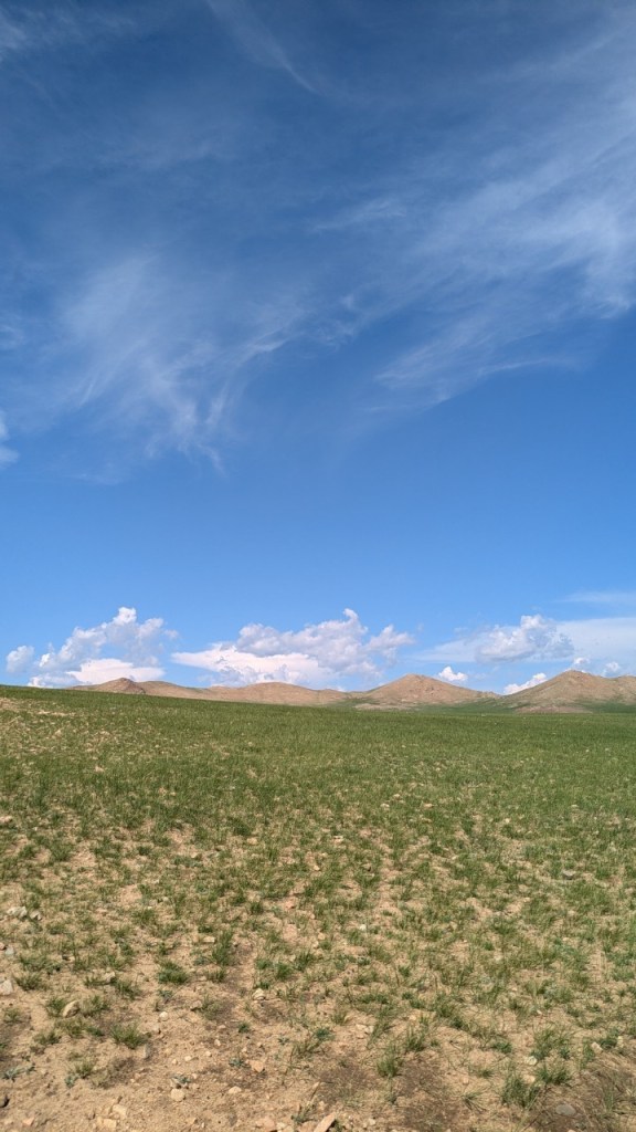 移動中の景色はずっと草原で、飽きることなく眺めていられる。何もないんだけど、雲が動いたり、草原の具合が変わったり。ずっと見ていて飽きない。本当にすごい!