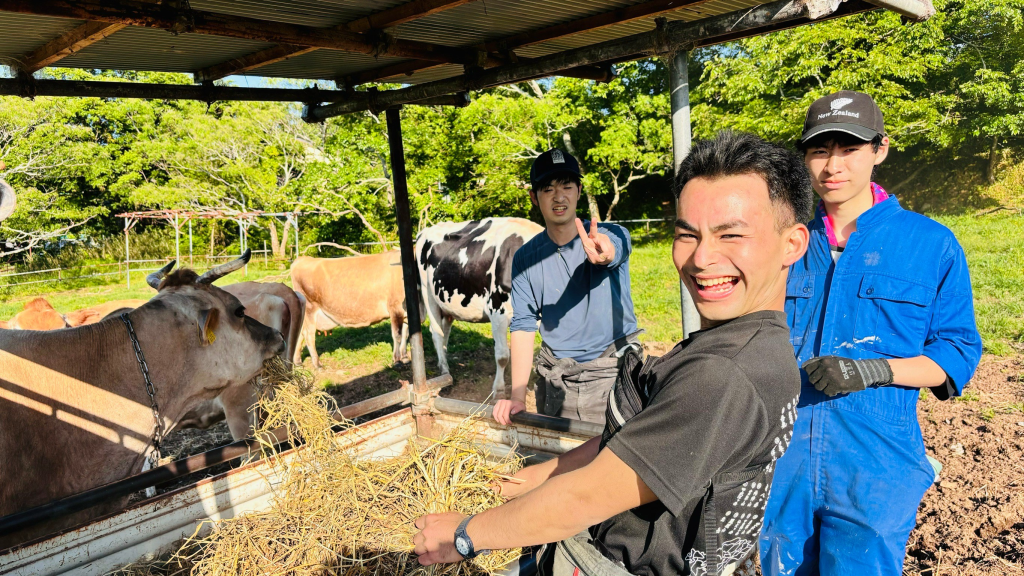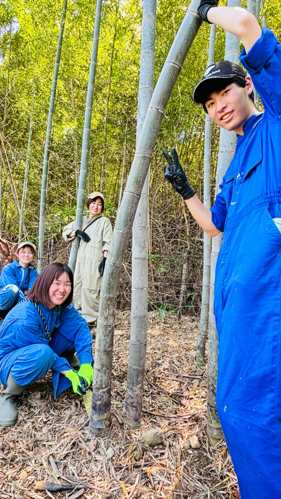 今回のメインワークは竹を切るワーク。牧草地に竹林が侵食し、動物に与える干し草が育たなくなってしまうため、伐採しました!