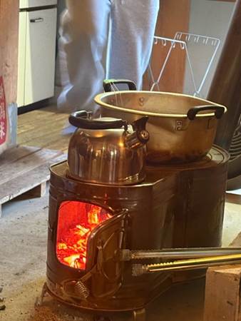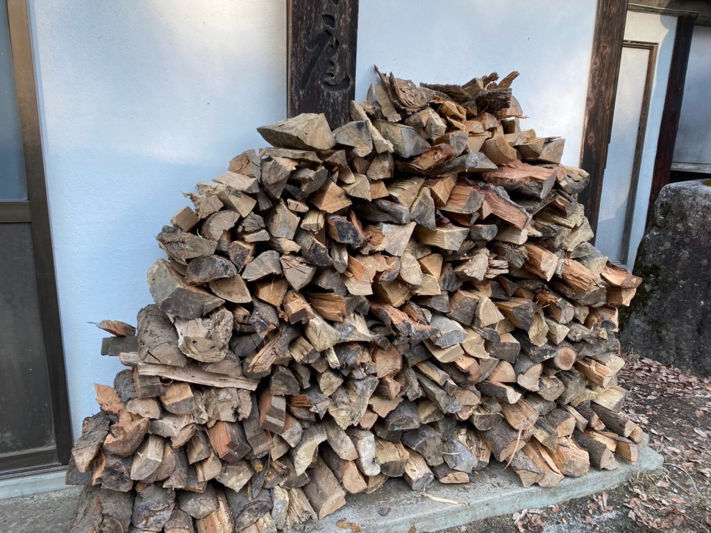 ここでは、暖房がないため自給自足でまきを割り、薪ストーブで生活しました!