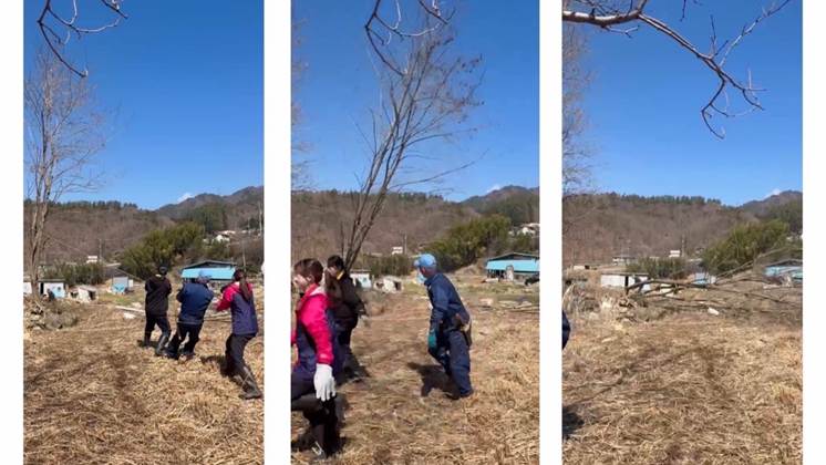 ☟木を引っ張って、倒れる前に逃げます🏃♀️