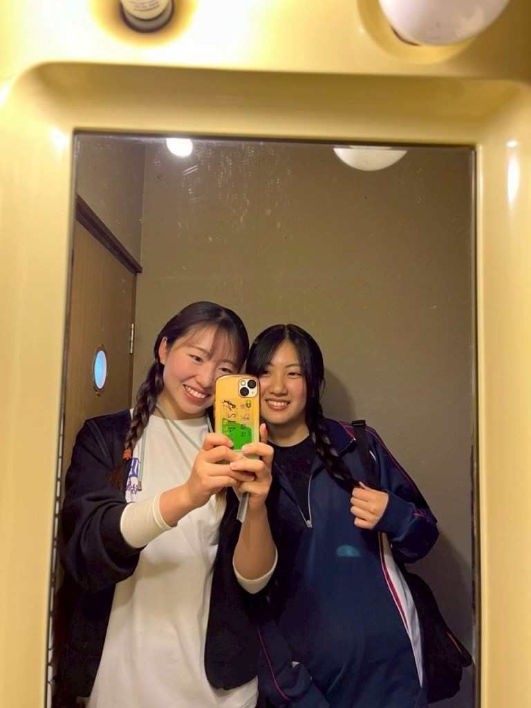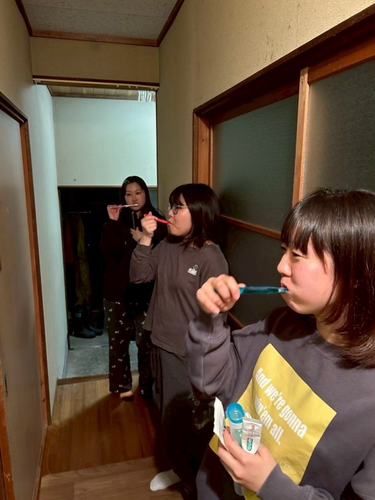 ぎゅうぎゅうになりながらのご飯やミーティング。最初は驚いたけれど、この狭さが落ち着く~