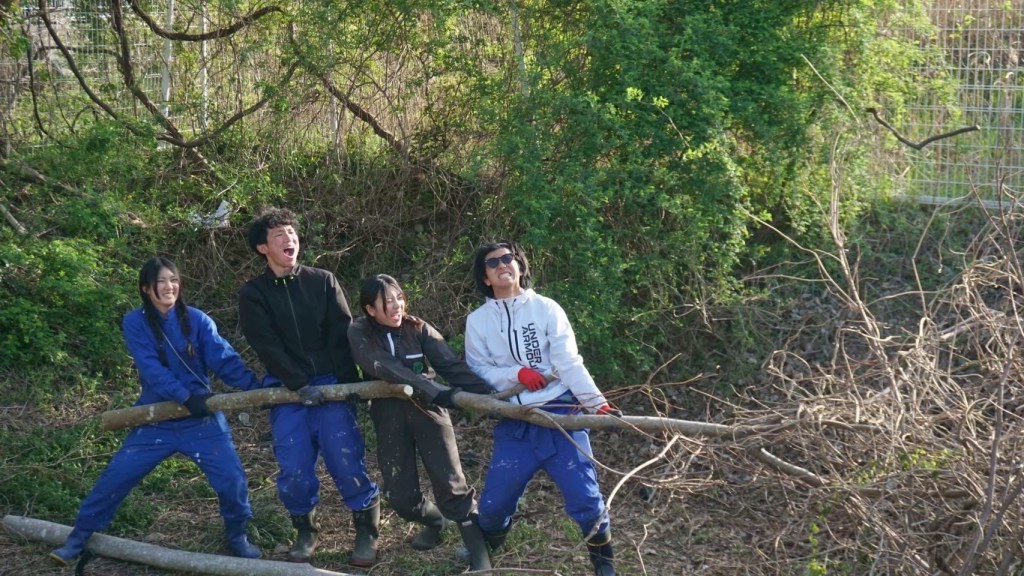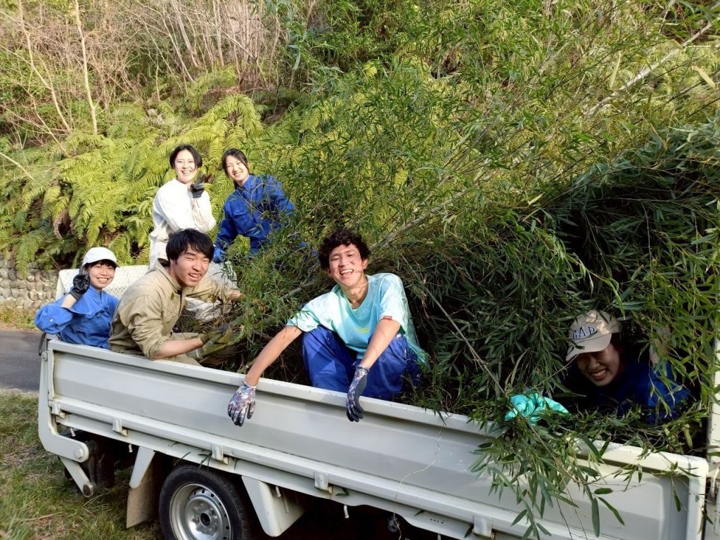 4つ目は、竹切りワークです!牧草地までの道に竹が繁殖して車も通れない状況でした…牧草地の草は、乾かして干草にし、牛の餌となります。そのため、車が通れないのはまずいです!