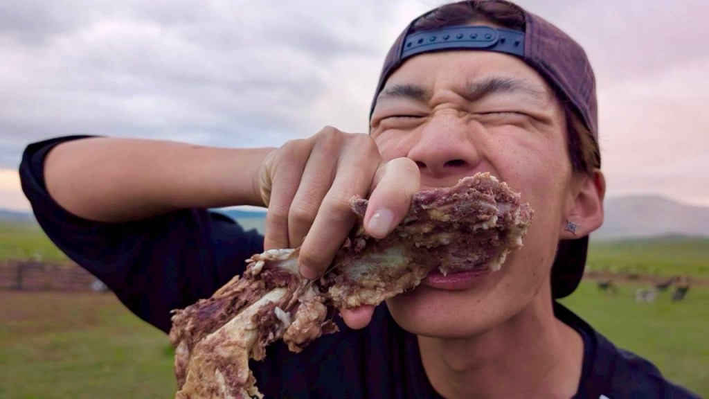そして、モンゴル人たちは、羊を一頭私たちのためにトサツをしてくれました。モンゴルでは「大地に血を流さない」という言葉があるようにナイフ一本で生き物に敬意を持ちながら羊を解体していきます。その手捌きは本当に見事。あっという間に私たちがよく知る、肉の塊になっていきます。