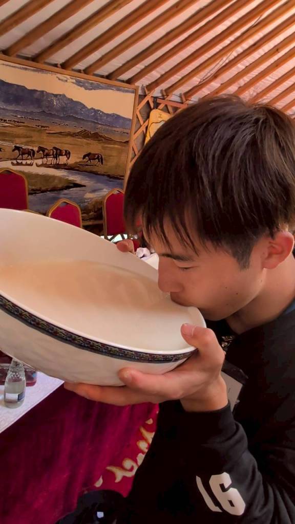 大きな器で馬乳酒をいただきました!