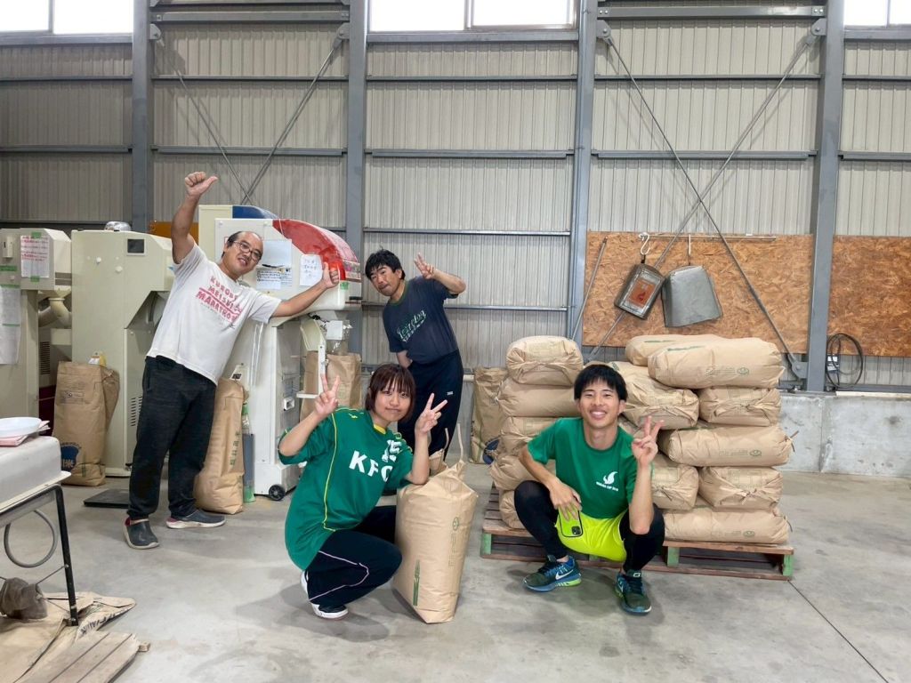 ②籾摺り(もみすり)は、機械で籾摺りが完了した米が落ちてくるので袋詰めする作業です!
