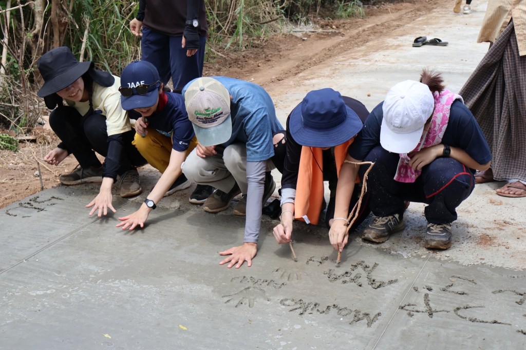 コンクリートが固まる前に、記念に名前や手形を入れさせてもらいました!