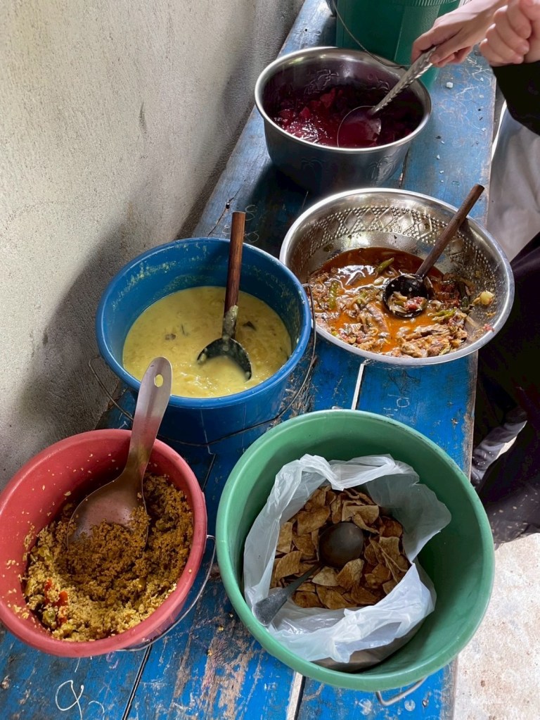 お楽しみのお昼ご飯は、村のお母さんたちが毎日手作りで用意してくれます。