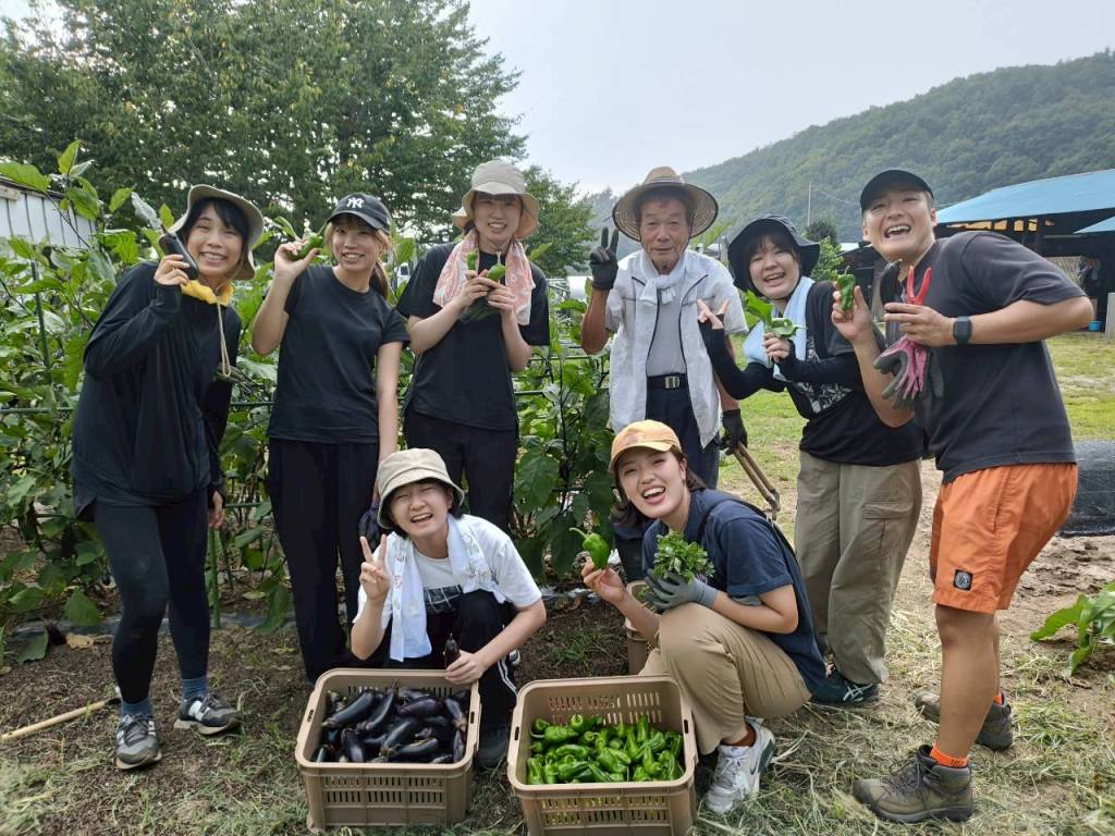 初日は、畑仕事のお手伝いでした!古民家の近くの雲峰荘という旅館で使う野菜を収穫しました!