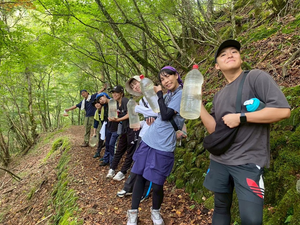 山小屋の近くの湧き水を汲んできます💧ペットボトルに入れて運びます!