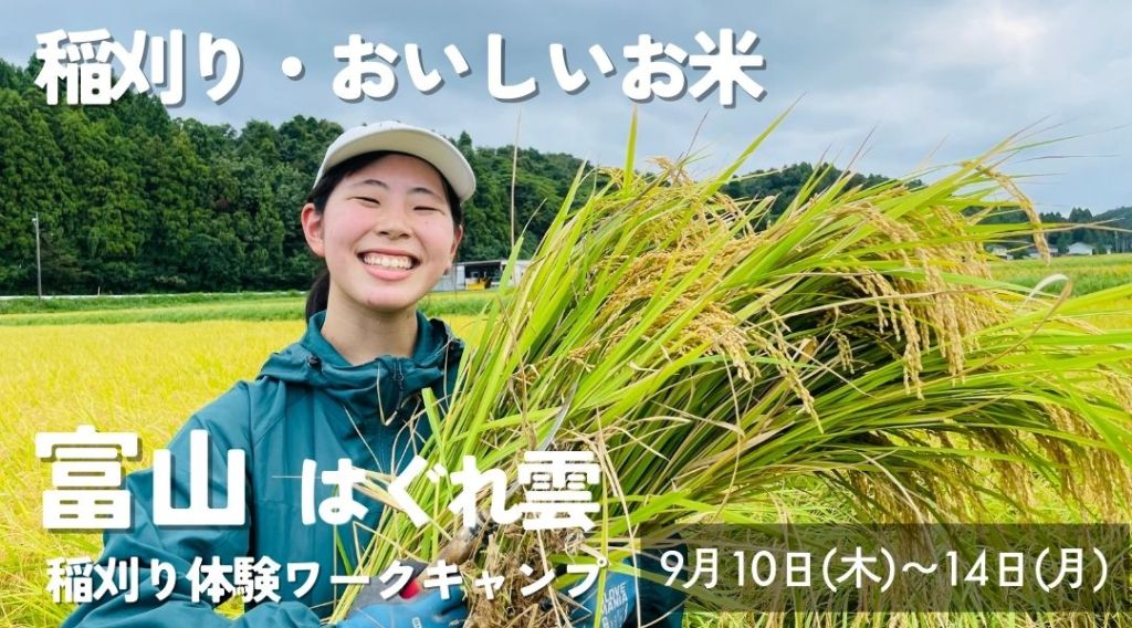 立山・黒部渓谷などで有名な富山県。雪解け水と肥沃な土壌に恵まれ、全国有数の米どころとしても知られています。富山ワークキャンプでは、田んぼに囲まれたのどかな環境で、稲作のお手伝いをします。